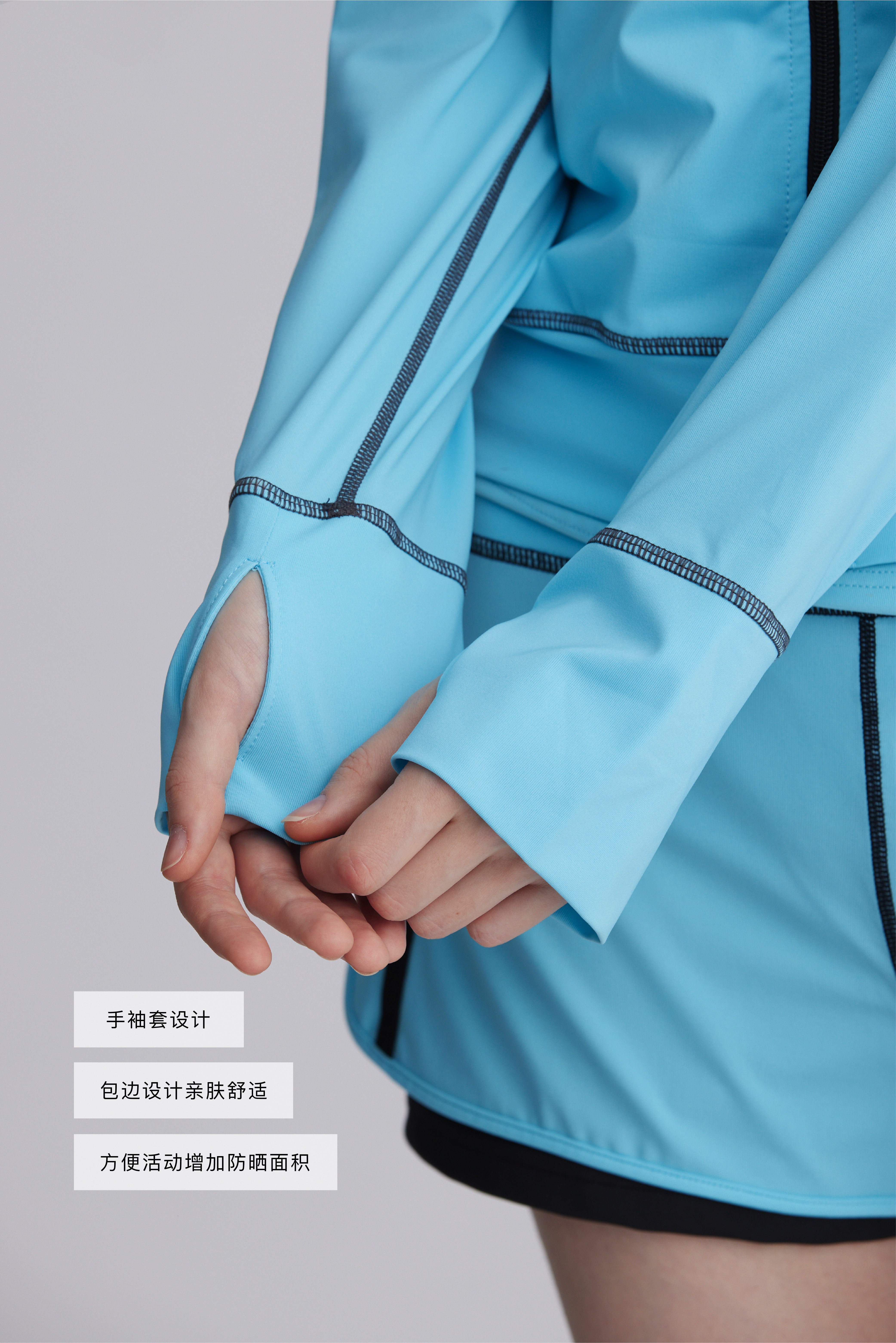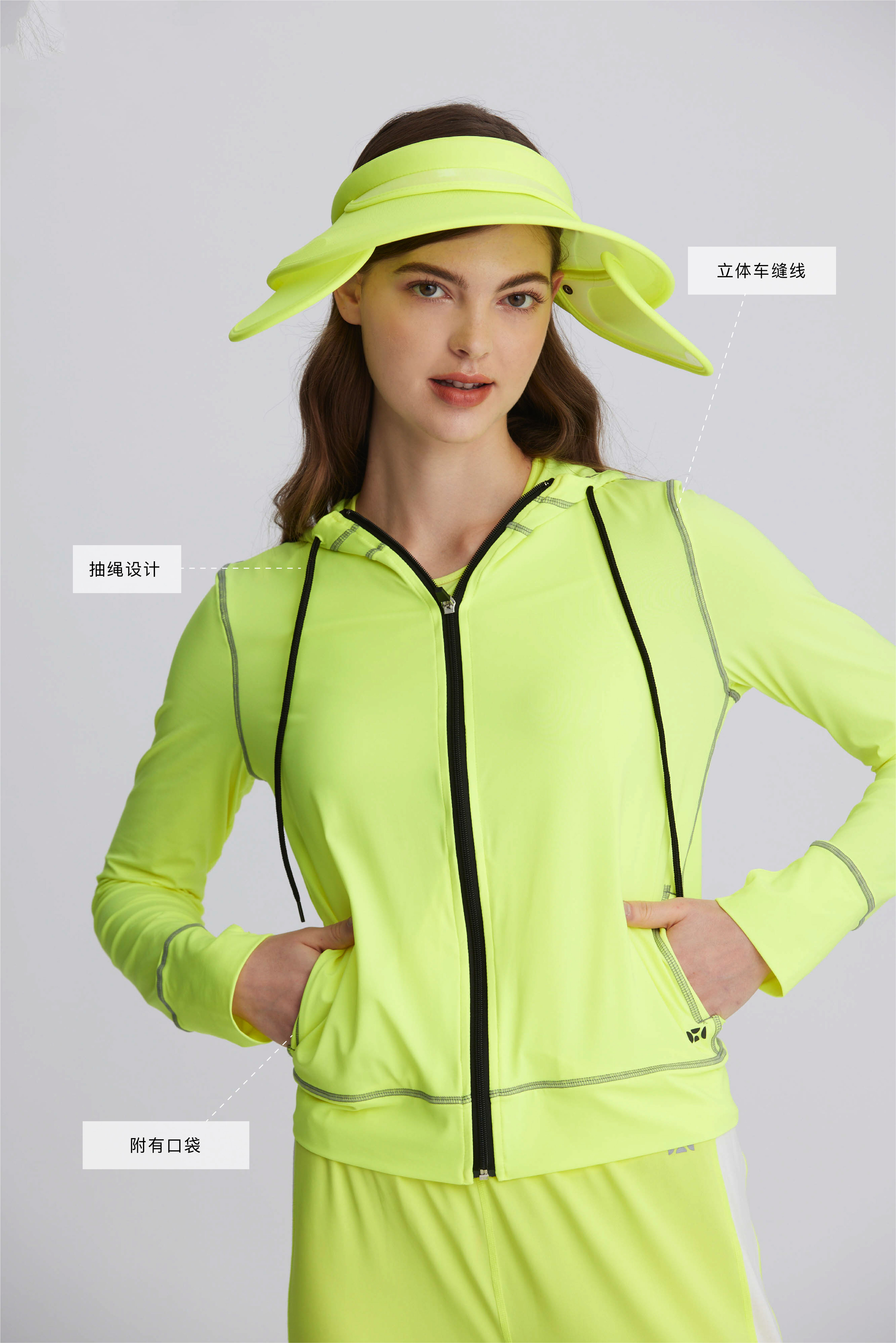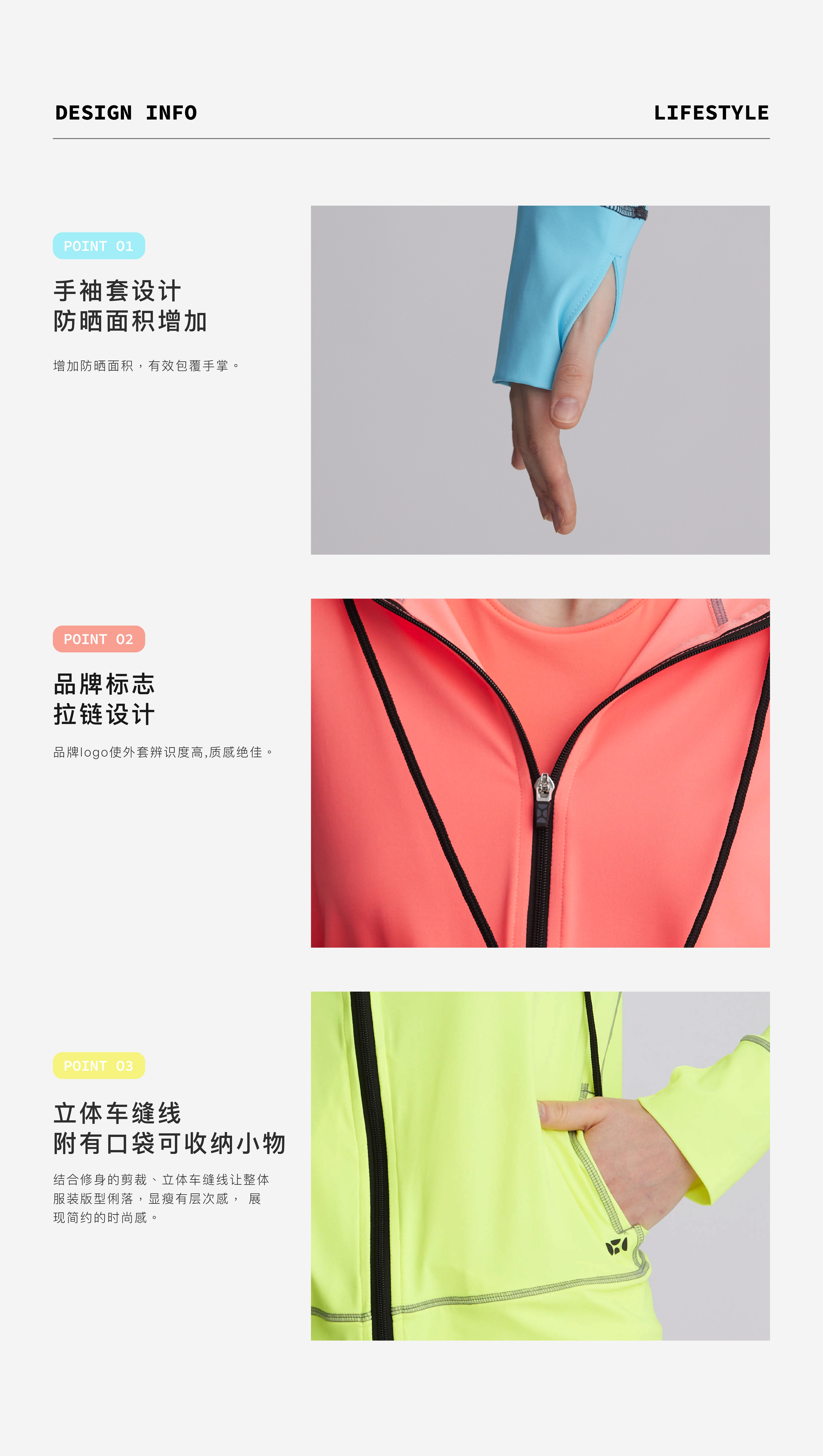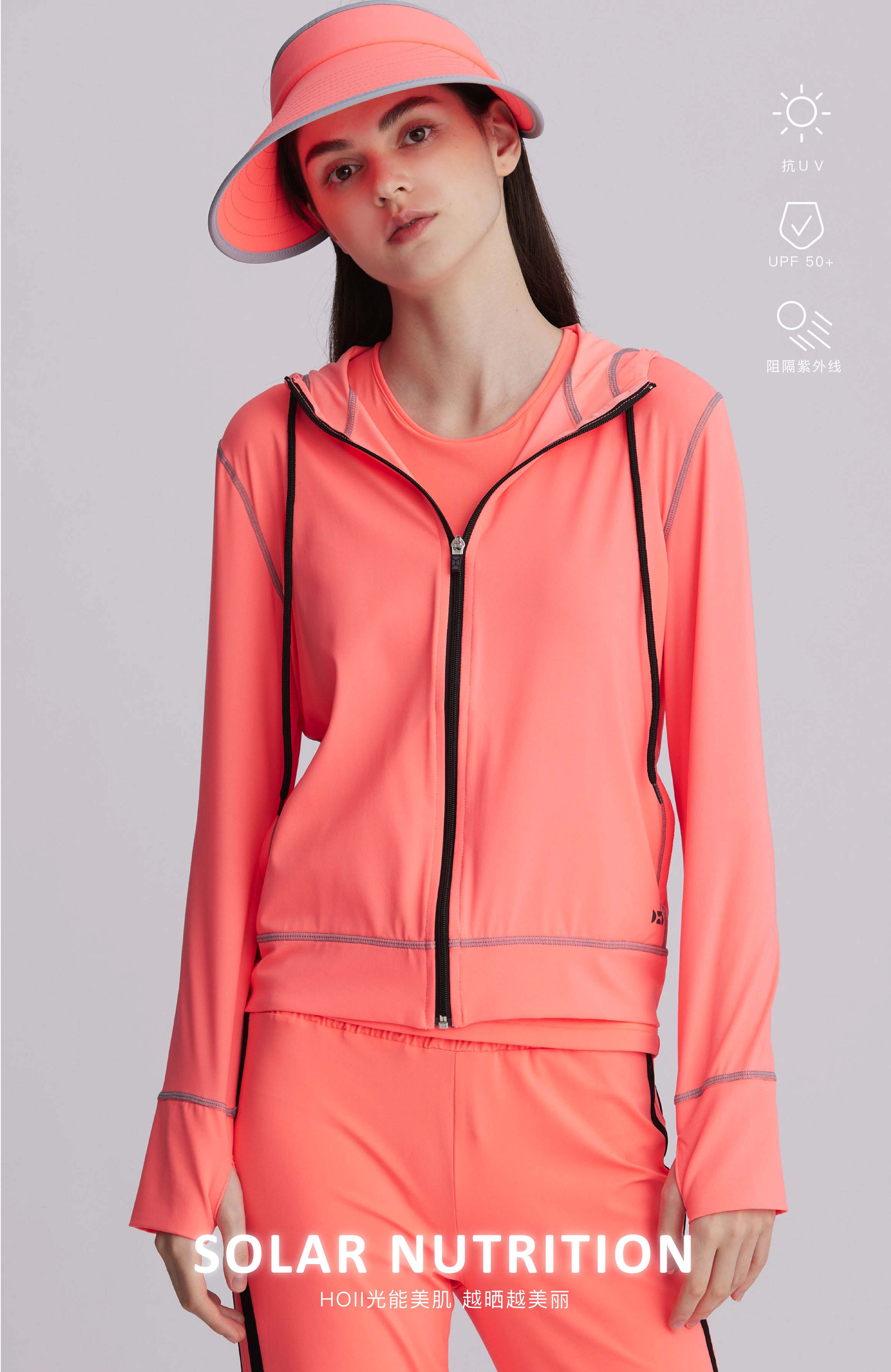 产品轻薄舒适,结合崭新的萤光环保涂料与纺织技术,除了有抗紫外线UPF50+的防晒效果外,更可将阳光转化集中为有益的可见光,依颜色不同,输出不同的波长及能量传递引导到肌肤上。