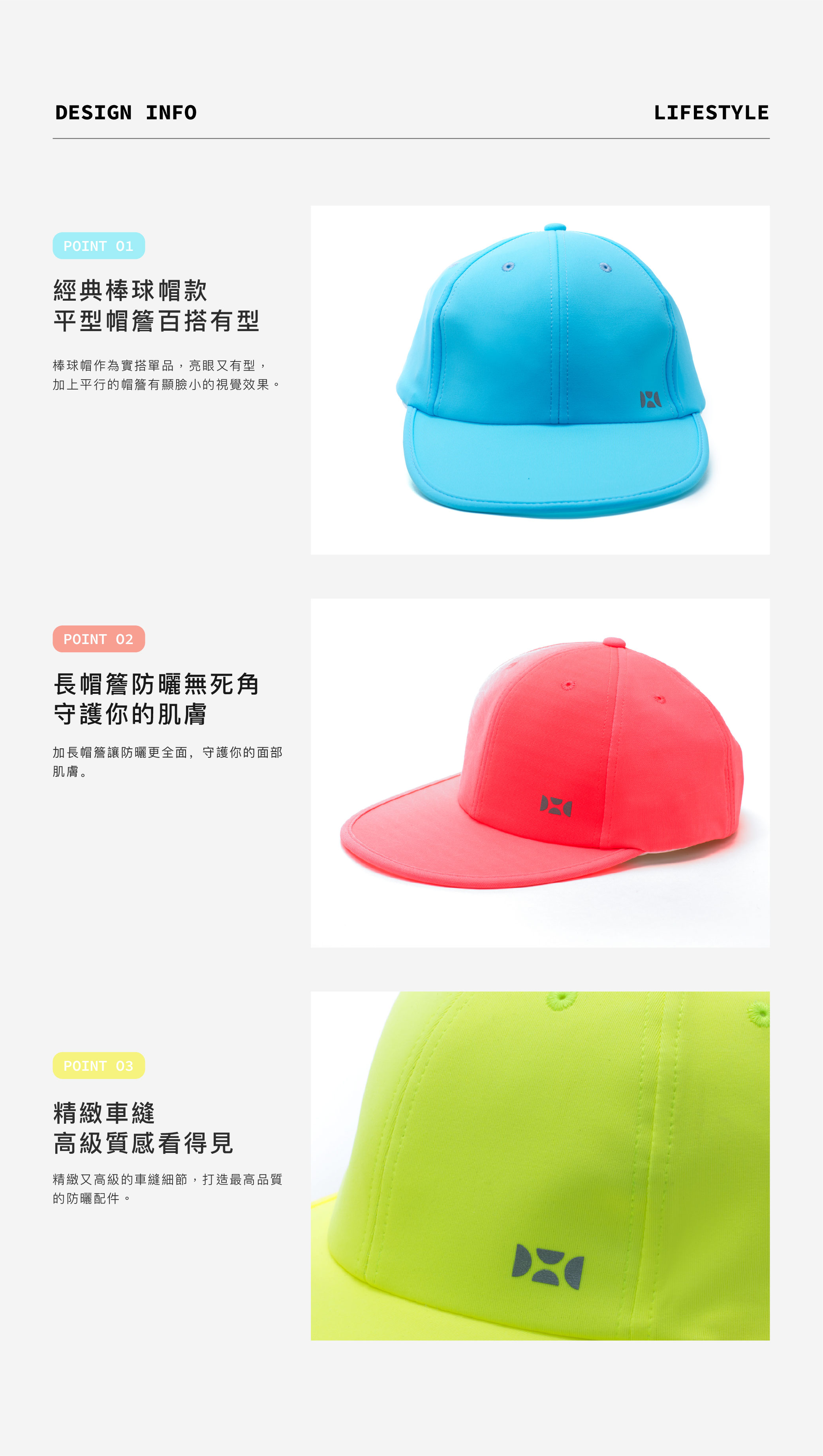 產品輕薄舒適,結合嶄新的螢光環保塗料與紡織技術,除了有抗紫外線UPF50+的防曬效果外,更可將陽光轉化集中為有益的可見光,依顏色不同,輸出不同的波長及能量傳遞引導到肌膚上。
